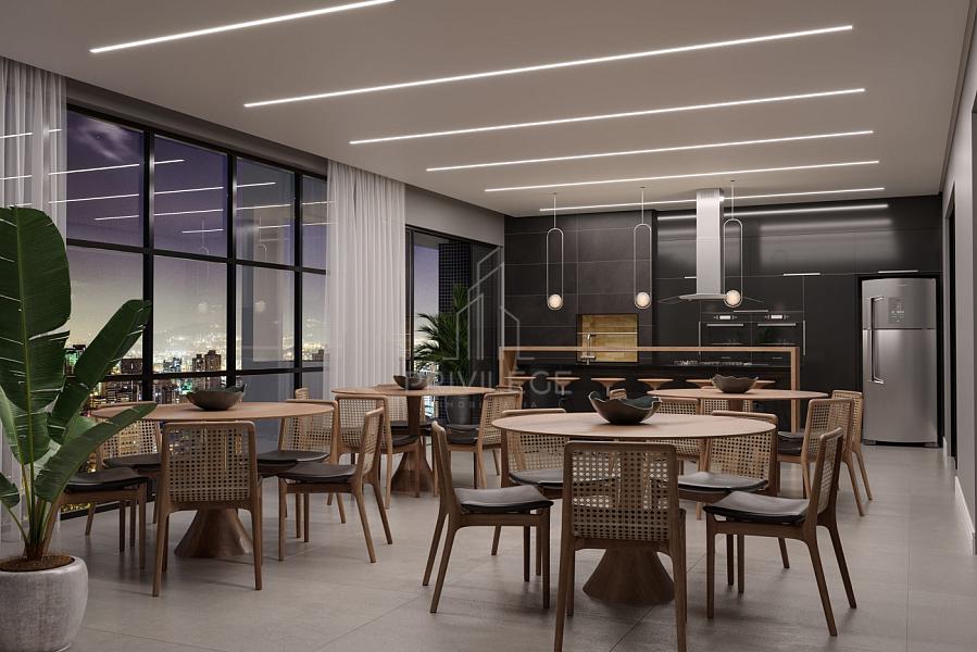Living amplo e integrado (estar, jantar e cozinha);