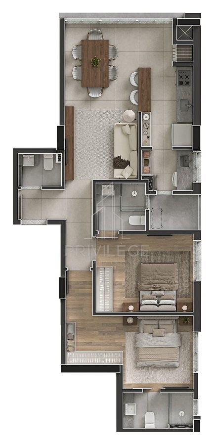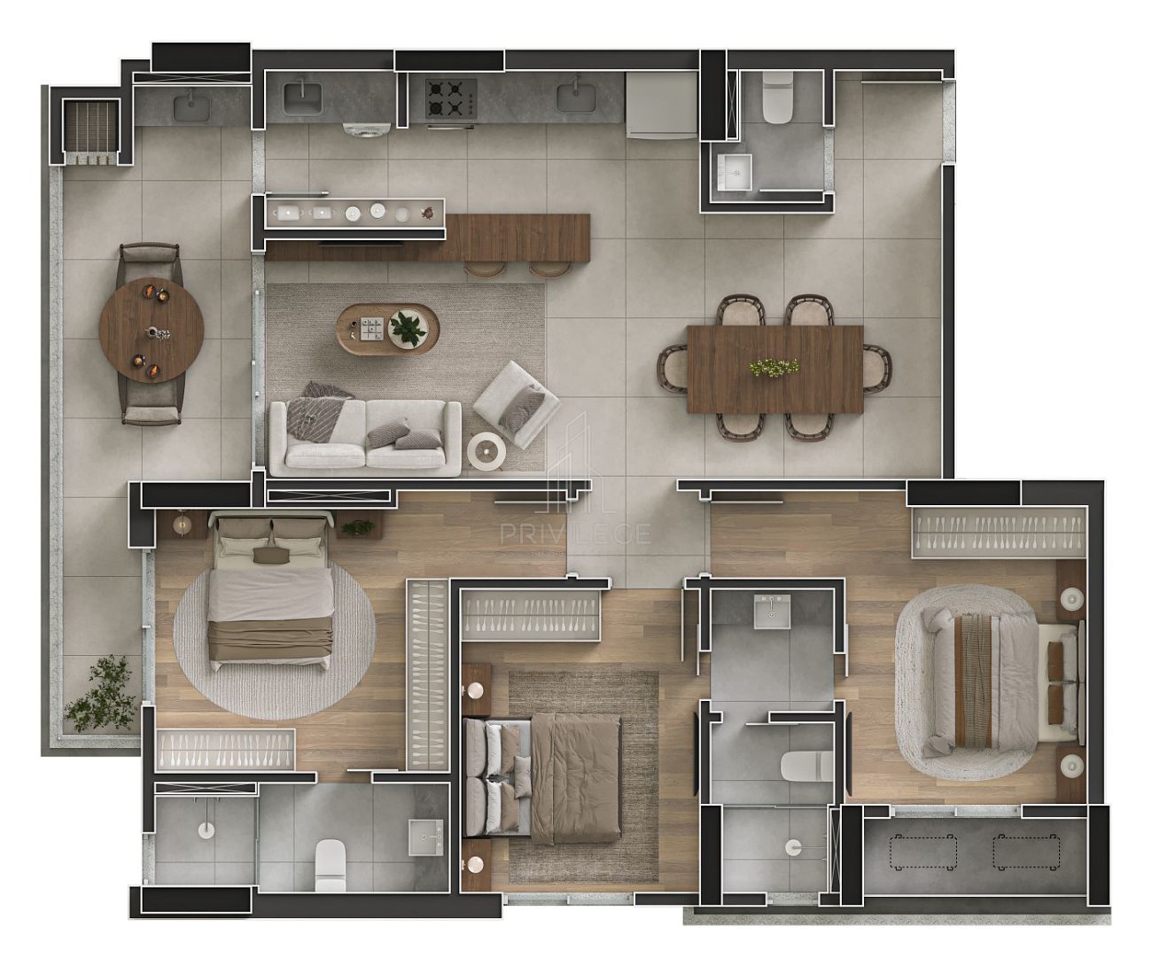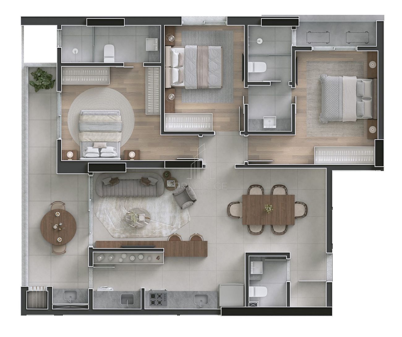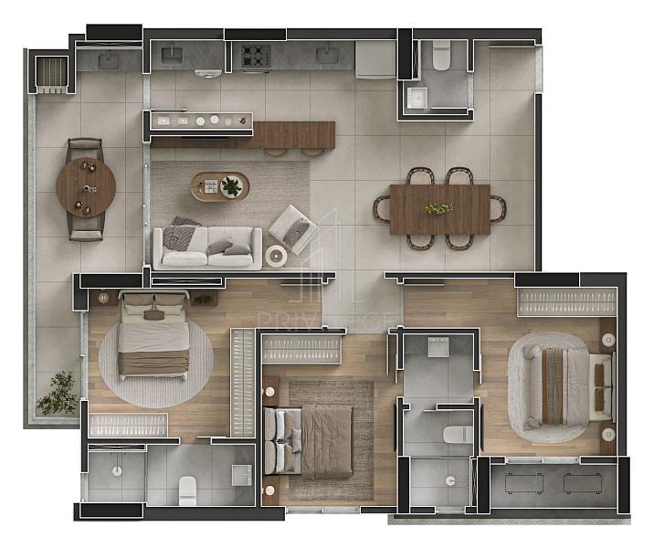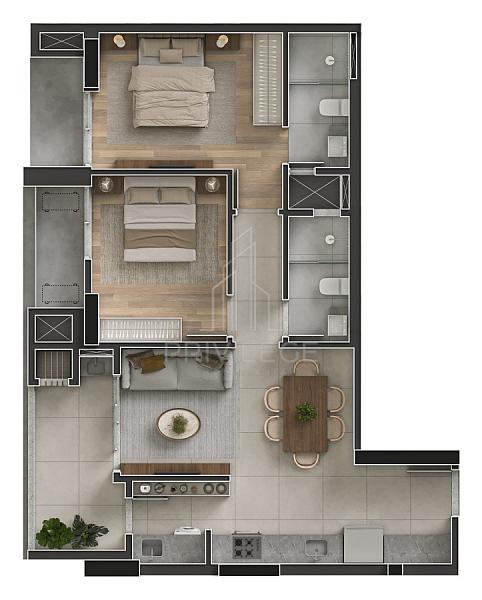 - Uma suíte e mais um dormitório;