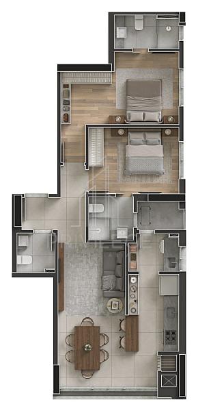 2 dormitórios (1 suíte)